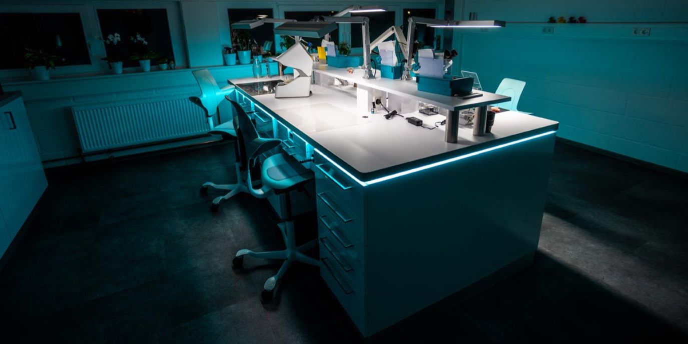 Meine Vision war und ist seit Beginn meiner Selbstständigkeit etwas zu schaffen, dass diese Passion auf unsere Tätigkeit projiziert. Dies wiederum erfordert gutes Personal, welches diese Leidenschaft teilt. Menschen, welche nicht stur Ihr Programm von 8 bis 5 abspulen, nein eben solche, die etwas künstlerisches Erschaffen möchten und unsere Klienten (seien es Zahnärzte sowie aber auch und vor allem Patienten) begeistern wollen. Unser Ziel ist es durch unseren Service und unseren exklusiven Zahnersatz dem Zahnarzt einen reibungslosen Ablauf im Arbeitsalltag zu ermöglichen und dem Patienten ein natürliches Lächeln zu schenken. Mit unermüdlichem Ehrgeiz, ständigen innovativen Ideen und eben dieser Portion Leidenschaft gelingt uns dies sehr gut. Was wir machen, dazu stehen wir mit vollem Einsatz. 2013 gegründet, kann das Dental Atelier nun auf fast 10 Jahre zurückblicken. Wir haben uns stetig weiterentwickelt – handwerklich, innovativ aber vor allem menschlich. Menschen sind es welche wir glücklich zu machen versuchen, dies gelingt am besten über eben diese Schiene. Den Menschen mit seinen Wünschen und Vorstellungen zu hören und verstehen. Nur dann gelingt die Symbiose aus Zufriedenheit und perfekter Funktion. 2019 durften wir unser neues, großes und modernes Labor in Saarbrücken/Güdingen beziehen. Auf über 400 qm Laborfläche können wir uns hier ganz entfalten. Da unsere Räumlichkeiten sehr großzügig sind und wir, wie bereits erwähnt, lieben was wir tun, bieten wir auch regelmäßig Fortbildungen für Zahnärzte sowie Zahntechniker an.